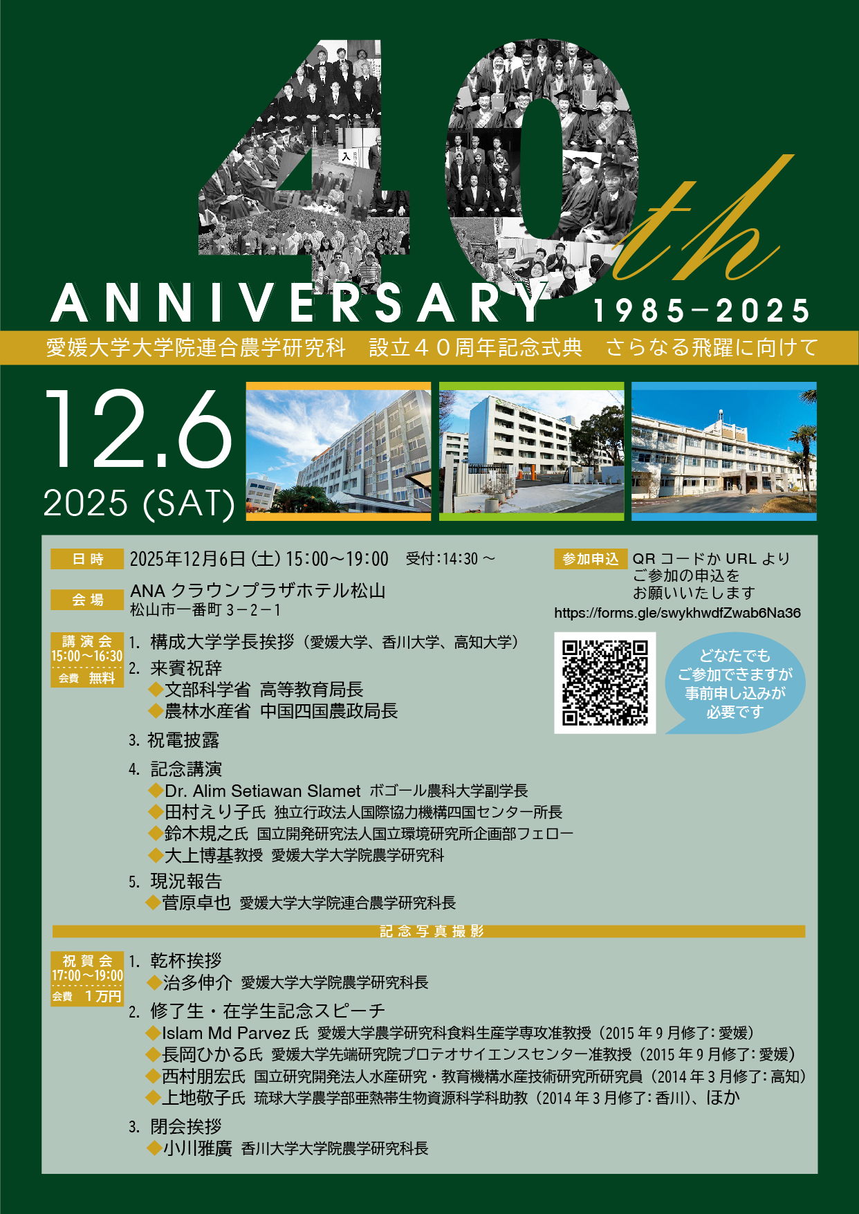 愛媛大学大学院連合農学研究科 設立40周年記念事業「さらなる飛躍に向けて」